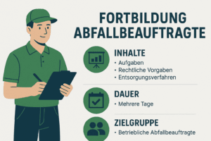 Unternehmen müssen Abfälle fachgerecht entsorgen. Das ist nicht nur umweltfreundlich, sondern auch gesetzlich vorgeschrieben. Laut § 59 des Kreislaufwirtschaftsgesetzes benötigen manche Betriebe einen Abfallbeauftragten. Dies gilt besonders für Unternehmen, die gefährliche Abfälle handhaben. Die zertifizierte Schulung zum Abfallbeauftragten ist sehr wichtig. Sie vermittelt das nötige Fachwissen für diese verantwortungsvolle Aufgabe. Teilnehmer lernen rechtliche Grundlagen und praktische Methoden des Abfallmanagements kennen.